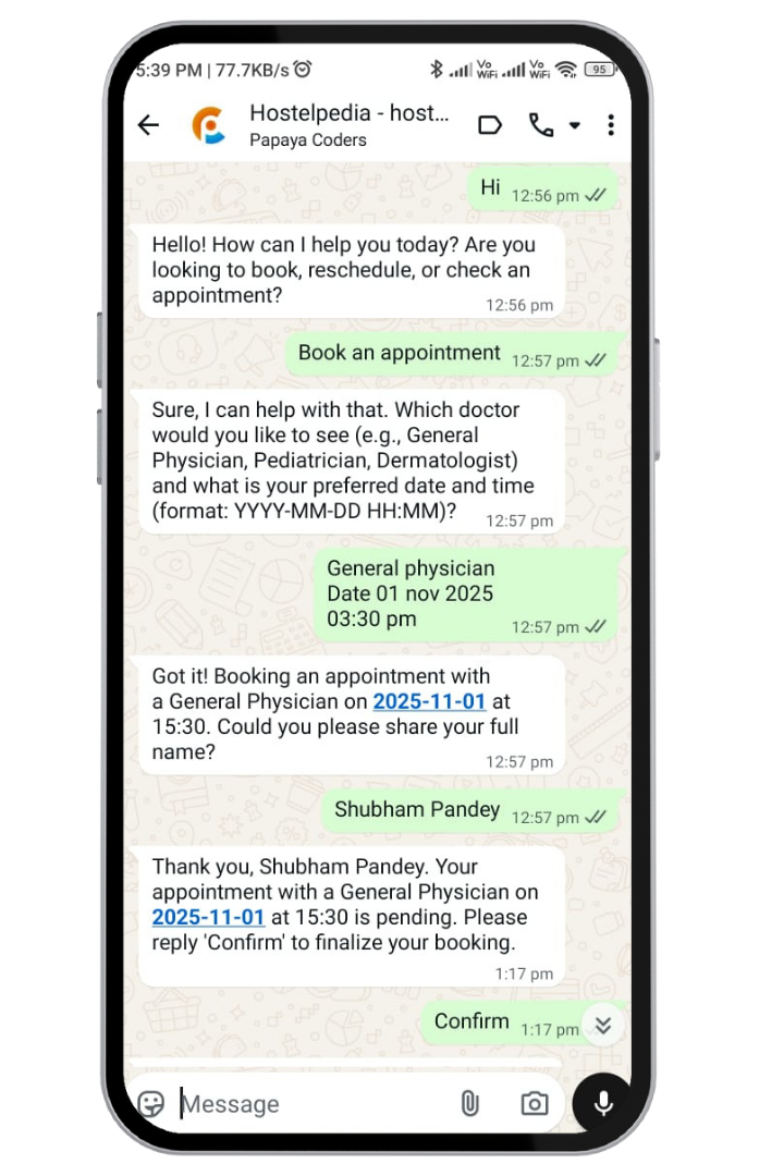 We build intelligent AI agents that automate customer support, lead qualification, bookings, and internal workflows. Our AI solutions integrate seamlessly with apps, WhatsApp, and business systems.